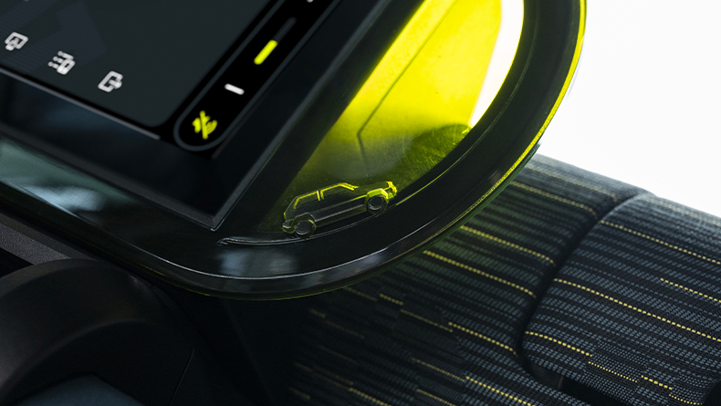 •Жовта рама приладової панелі - форма, натхненна Lingotto.